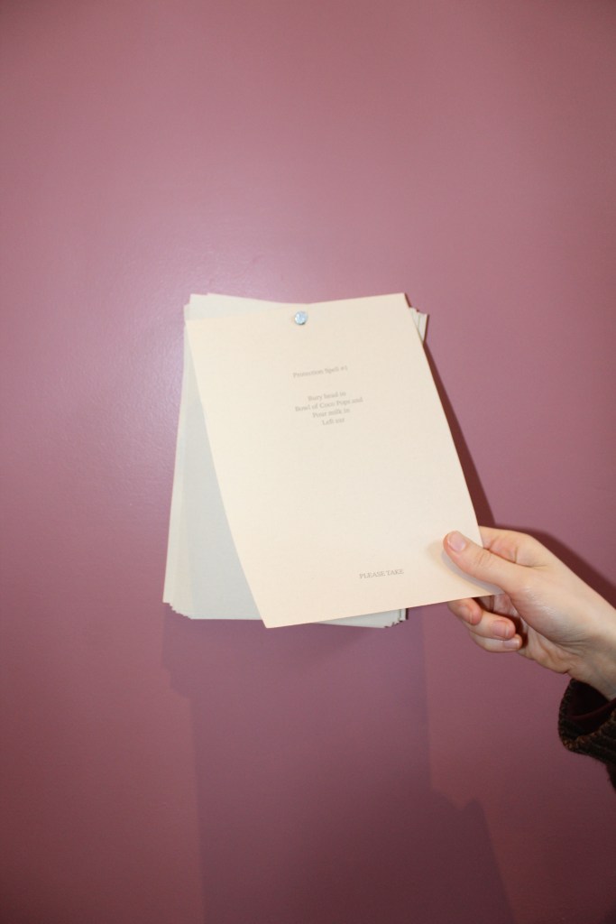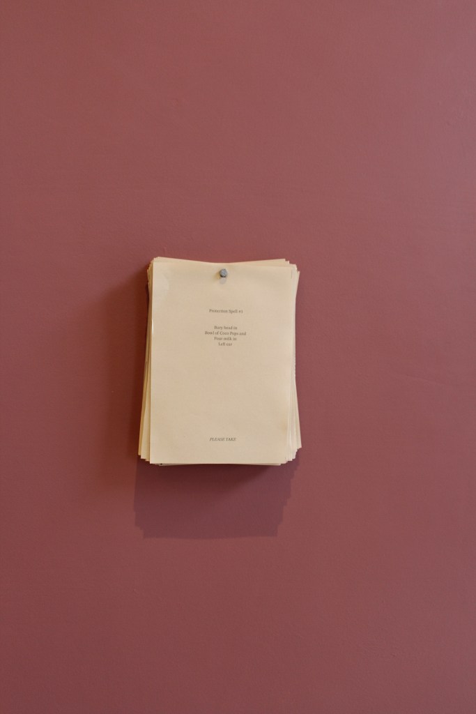 Superstitious was a group show curated by Leonie Cameron. I offered 111 Protection Spells. Visitors were invited to take one.