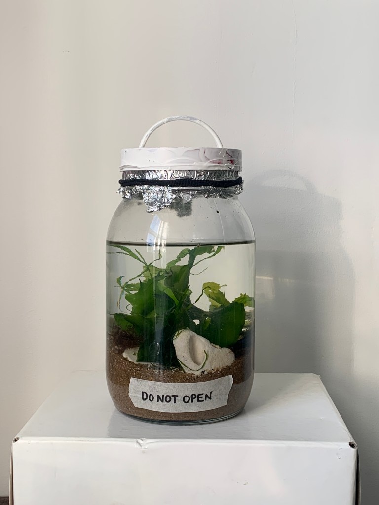 To accompany my performance at Carrie Foulkes’ exhibition, Defence Mechanisms, at Avalon cafe, I made this saltwater ecosphere from my local stretch of beach on a day of high sewage warning.